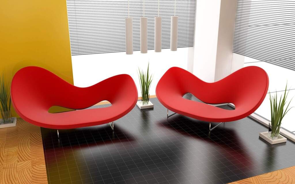 - Оригинальными могут быть кресла и диваны, ну, или подушки на них. Уместны в гостиной подвесные модели, бескаркасные и анатомичные изделия, напоминающие совершенно другие предметы.