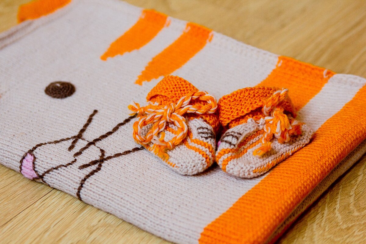 Вязаный плед для маленького ребенка – вещь почти универсальная. И места мало занимает, в кроватку пригодится, и в коляску. Как в анекдоте про солдата в шинели. - Солдат-солдат, тебе летом в шинели не жарко? - Нет, она ж не на вате! - Солдат-солдат, тебе зимой в шинели не холодно? - Нет, она ж шерстяная! Вот и это одеялко: оно и теплое, и легкое, и не на вате (но на подкладке, потому что вязание с изнанки все равно не будет таким красивым, как с лица – несколько цветов, вышивка, перекрещенные нитки). Точных данных не приведу, комплект уехал к владельцу, посчитать ряды уже невозможно, но здесь принципиальна сама идея. И все очень и очень просто. Для пледиков – и в этом случае тоже - я чаще всего использую пряжу из детской серии от известного отечественного производителя. 50% шерсть «меринос», 50% - ПАН (микрофибра), 225 метров в 50-граммовом мотке. Такая смесовая пряжа отлично вяжется, замечательно стирается, не скатывается и быстро сохнет. Не пряжа, а мечта поэта…Этот плед – ра