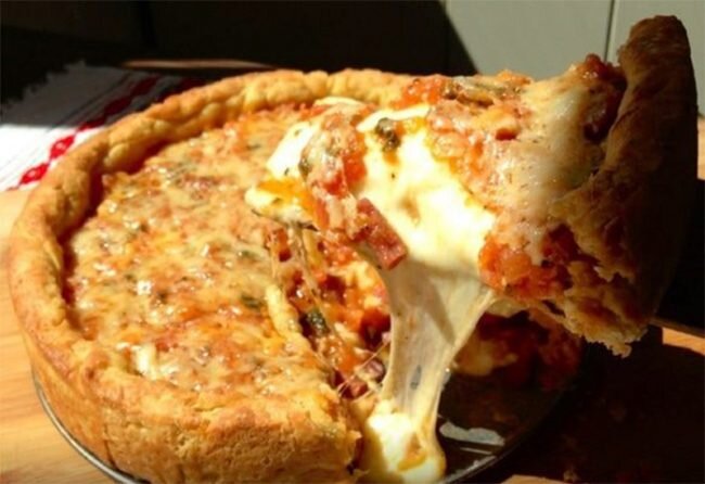 Пицца по-чикагски – это так называемая deep dish (глубокое блюдо) pizza с толстым слоем сыра на дне, большим количеством начинки и высокими краями. Если вы любитель пиццы, то, скорее всего, предпочитаете пробовать самые разные вариации этого блюда. Каждый из них отличается не только начинкой, но иногда и способами приготовления теста. Для того, чтобы расширить свои познания в кулинарии и побаловать свои рецепторы, вашему вниманию представляется чикагская пицца: рецепт с большим количеством начинки. Приготовив ее один раз, вы станете ее поклонником навсегда, также как и большинство жителей Америки, после того, как известный американский шеф повар Айк Сьюэл приготовил ее в одной из своих пиццерий. Смотрите также: Пицца с колбасой и сыром в духовке: Простой пошаговый рецепт Ингредиенты: Обратите внимание на то, что для приготовления этого вида пиццы необходимо будет взять глубокую форму с высокими бортами. для теста: для начинки: Пошаговое приготовление: Первоначально необходимо пр