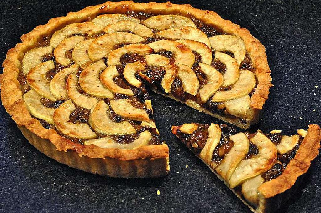 Отдельные пироги фарша - это классический британский рождественский подарок, но для внесения изменений еще один вкусный пирог - это фарш и яблочный пирог. Вместо небольшого отдельного молотого печенья, норковое мясо и яблочный пирог представляют собой целый открытый пирог с нарезкой, который является прекрасным лакомством во время чая или подается с ванильным рагу или соусом из бренди, хорошим пудингом.