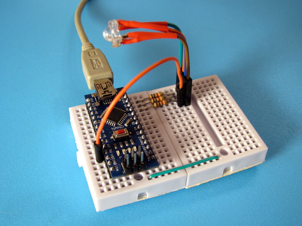 Ещё понадобятся три токоограничительных резистора для светодиода.