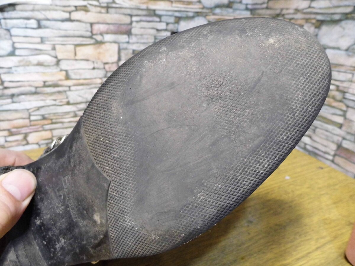 Здесь набойка уже менялась. Пора опять. И профилактика уже нужна. То есть на лысой подошве уже ходили, и набойка была тоже плоская. Это не опасно, но заказчица упомянула, что бывает скользко. Вот и применим эту новинку. Вот фото до отделки / закраски.