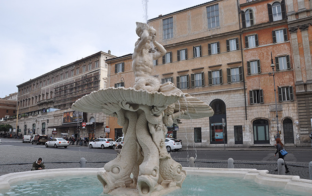 Расположенный на площади Навона фонтан «Четырех Рек», создал архитектор Бернини в XVII веке для украшения дворца папы Иннокентия X Памфили. Это творение символизирует крупные реки известных на то время четырех частей света: в Азии Ганг, в Африке Нил, в Европе Дунай и Рио дель Плата в Америке. Великие реки изображены в образах гигантов, среди которых скульптура Нила создана с покрывалом на голове, что символизирует недостаточную изученность истоков этой реки в те времена.