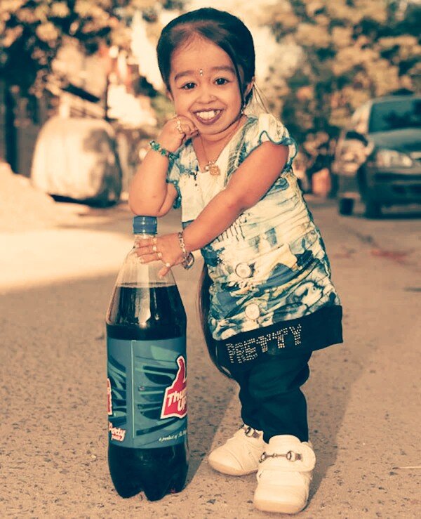 Джиоти Амге родилась в 1993 году в Нагпуре, Индия. С самого рождения Джиоти поставили весьма неутешительный диагноз – ахондроплазия, что означает системное поражение скелета. Иными словами, Джиоти Амге – карлик, и вылечить этот недуг, увы, невозможно. Так, взрослея, Джиоти продолжала оставаться просто крошечной – в итоге к 18 годам рост ее составил всего 68.2 см (24,7 дюймов), что примерно соответствует росту не самого крупного двухлетнего ребенка. Вес девушки составляет 12 кг. Впрочем, при всех минусах такого положения, нашлось и место радости и победам – в 2012 году Амге попала в знаменитую Книгу рекордов Гиннесса (Guinness Book of Records), официально став 'Самой маленькой женщиной в мире'. Представители Книги прибыли в Нагпур из Лондона (London), где в соответствии со всеми формальностями и правилами были произведены все необходимые измерения, результатом которых стал заветный сертификат. Кстати, ранее Джиоти уже удерживала подобный рекорд в качестве подростка. Известно, что серти