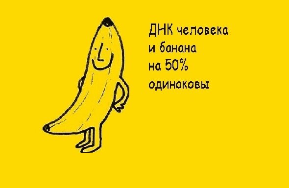 Правда ли это? Действительно, примерно 50% последовательностей нуклеотидов в человеческой ДНК совпадает с таковой в ДНК банана... или в ДНК картофеля, или в ДНК редиса, или в ДНК помидора. В общем, в ДНК любого растения. Стоит ли этому удивляться? Решайте сами.