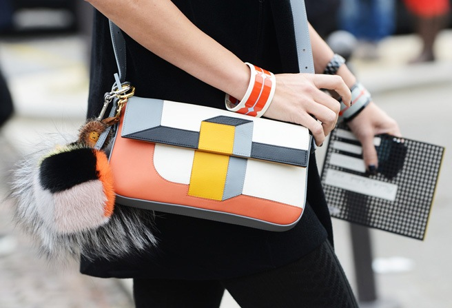 - С одеждой выдержанных цветов прекрасно сочетаются яркие сумочки.