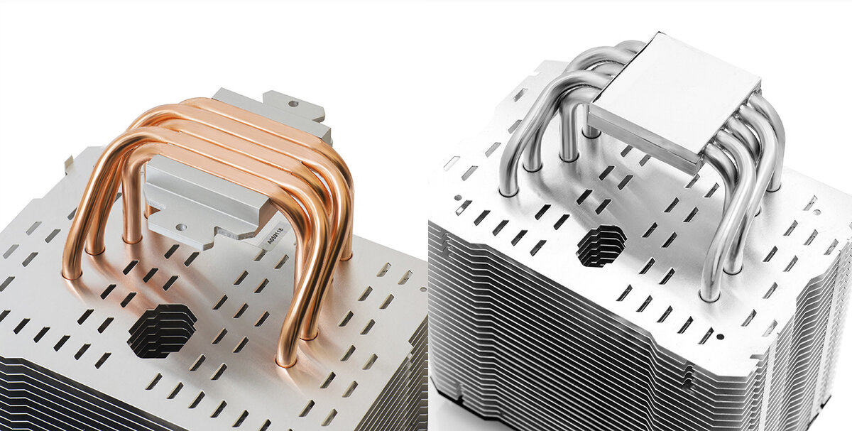 Технология прямого контакта, при первом с ней знакомстве, показалась мне не лучшим решением, поскольку пластина «закрытого» основания улучшает равномерность нагрева всех трубок. На мой взгляд, лучше отдать тепло с небольшой задержкой на три трубки, чем быстро, но на одну. Большая нагрузка на одну-две трубки, при работе всех остальных на «холостых оборотах», может привести к тому, что процесс испарения хладагента в них (перегруженных) будет происходить быстрее, чем его конденсация и возврат к основанию. В такой ситуации отбор тепла уменьшается не в разы, но на порядки, то есть практически прекращается. И что же тут хорошего? Кроме того, вероятность точного попадания «голой» трубки конкретно в точку с наиболее горячим местом (над кристаллом процессора) под большим вопросом, а вернее – как повезет. Но, именно это «преимущество» прямого контакта является одним из главных аргументов его сторонников.