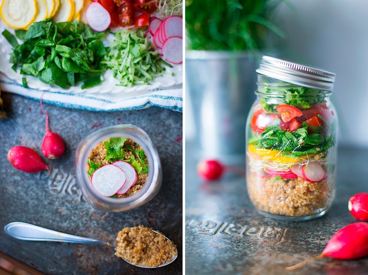 Этот рецепт - хороший трамплин для приготовления новых салатов. Вы можете положить в него много других овощей или, может быть, свинину. Кеноа еще называют матерью зерна,в которой много белка, жира и кальция. Не содержит глютена, поэтому подходит для больных с глютеновой болезнью. Благодаря большому количеству клетчатки прекрасно усваивается. Идеально подходит для салатов, супов или выпечки (например, для приготовления хлеба или кексов). ВРЕМЯ ПОДГОТОВКИ Подготовка 35 мин. ИНГРЕДИЕНТЫ: -75 г приготовленной кеноа (⅓ чашки) -4 горсть шпината -8 помидоров черри -кусочек огурца (около 4 см) -¼ небольших цуккини (около 4 см) -4 редиса -2 горсть ростков брокколи -4 столовые ложки рубленого кориандра -40 мл оливкового масла для заправки 4 столовые ложки -2 столовые ложки рисового уксуса -1,5 столовые ложки тамари -1,5–2 чайных ложки меда -1 тертая чайная ложка имбиря ПРОЦЕДУРА: Промыть ⅓ чашки кеноа (как рис) и варить с ⅔ чашки воды и небольшим количеством соли. После приготовления варит