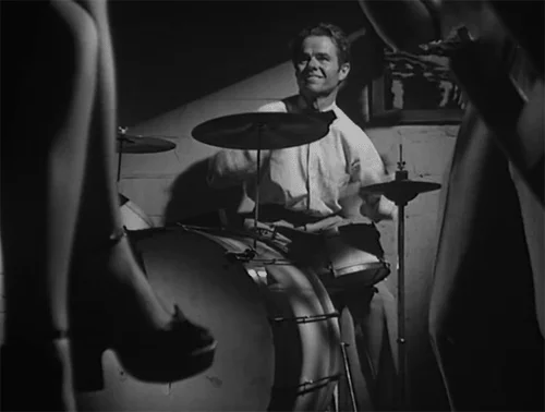 Соло барабанщика на фирменном диске означало деньги на ветер. По крайней мере - часть той суммы, что с вас содрали спекулянты. Семь минут бессмысленного грохота обходилась минимум в червонец, на который можно было провести вечер в кабаке, оставив рубль на такси Разумеется, были и мазохисты, сопровождавшие прослушивание обильной жестикуляцией перед зеркалом или собутыльниками. Местечковые эксперты любили щегольнуть знанием терминов "педаль" и "бочка". Лабухи цинично посмеивались, подгревая их энтузиазм. Солдат спит - служба идет. Покуда ударник понтуется, можно нвестить в буфете "киру петровну". Или, как поется у Аркадия Северного - "можно даже покурить и щей покушать". Но по большому счету игра на одних барабанах - показуха и хамство, один из наиболее вульгарных приемов концертного мошенничества, ни чуть не лучше словесных поносов Бруса Спринстина между песнями. Зато в кинематографе - зарубежном и даже отечественном, хватает эпизодов, где подобное занятие выглядит артистично и умест