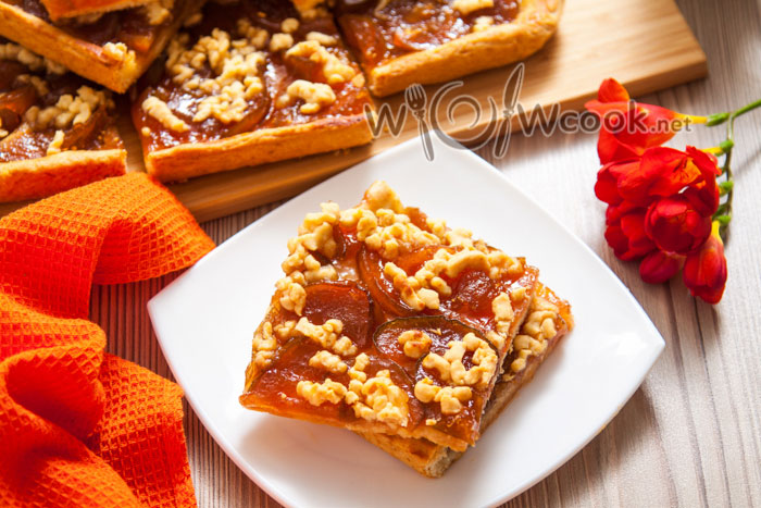 Вкуснейший пирог из песочного теста с вареньем готов! Нарезаем и подаем к чаю. Приятного аппетита!