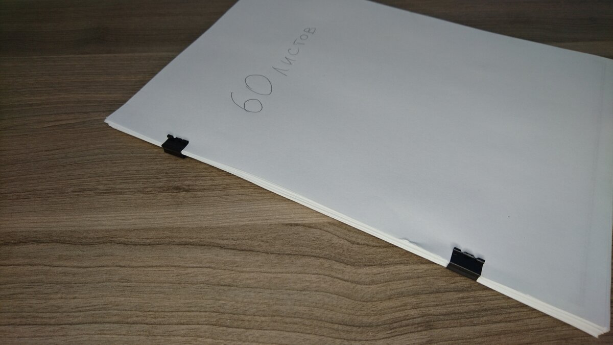 Зажимы скрепляют твердым переплетом пачку бумаг после чего она становится книгой или тетрадью. В любой момент документы можно разархивировать. Это легкий и надежный инструмент временного архивирования. При необходимости, убираете «лапки» и временный переплет становится еще эргономичнее. Все больше покупателей ценят пользу этих помощников и продажи зажимов для бумаг постоянно растут. Какие бывают зажимы для бумаг Зажимы разделяются по ширине. Она измеряется вот здесь Типовые размеры 51 мм, 41 мм, 32 мм, 25 мм, 19 мм, 15 мм. Производители заявляют следующее количество скрепляемых листов: Проверим? Пачки в 200 и 230 листов листов я с большим трудом сброшюровал.