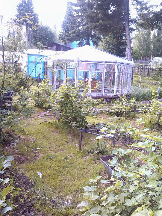 В свое время как и все мы меняли окна своей квартире и в квартире родителей. Выкидывать нам было их жалко , и мы их отвезли на дачный участок. Так как у нас на участке уже было две теплицы, а точнее два парника ,да и место уже практически не оставалось. Был небольшой клочок земли, на который прямоугольная теплица не смогла бы поместится , но можно было поставить круглую . Взвесив все за и против мы приступили к строительству нашей новой теплице. Как показало время два плюса можно выделить такой конструкции: К сожалению, в этом месте куда мы поставили наш парник было немножко не ровное место и нам пришлось немного выравнивать . Это место было сырым, что в дальнейшем показала большим плюсом для выращивания там огурцов. А для парника минусом, каждую весну пришлось поправлять рамы из за грунтовых вод. Первый год после строительства такого сооружение, мне пришлось очень долго носить туда перегной и компост и конечно же траву на низ грядок. Мои усилия были не напрасны, так как в