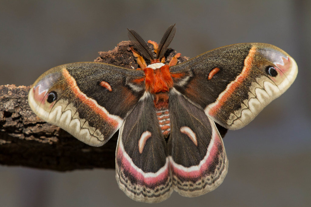 🦋 Павлиноглазка цекропия – самый крупный мотылек Северной Америки и один из самых ярко раскрашенных. Палитра оттенков, в которые окрашены эти обитательницы лесов и садов, напрямую зависит от температуры воздуха, при которой росли и развивались их личинки. Чем теплее стояли деньки, тем больше красных и бурых тонов можно увидеть на крылышках бабочки. В отличие от большинства павлиноглазок, на крыльях цекропий нет характерных для этого семейства маленьких полупрозрачных «окошек». Жизнь взрослых павлиноглазок цекропий длится всего две недели и уходит на то, чтобы найти партнера, спариться и отложить яйца. Эти большие и яркие мотыльки созданы только для того, чтобы размножаться: у них полностью отсутствует пищеварительная система и нет ни малейших признаков рта или челюстей.