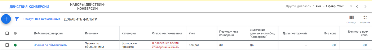 - В качестве источника конверсии выбрать пункт «Телефонные звонки».
