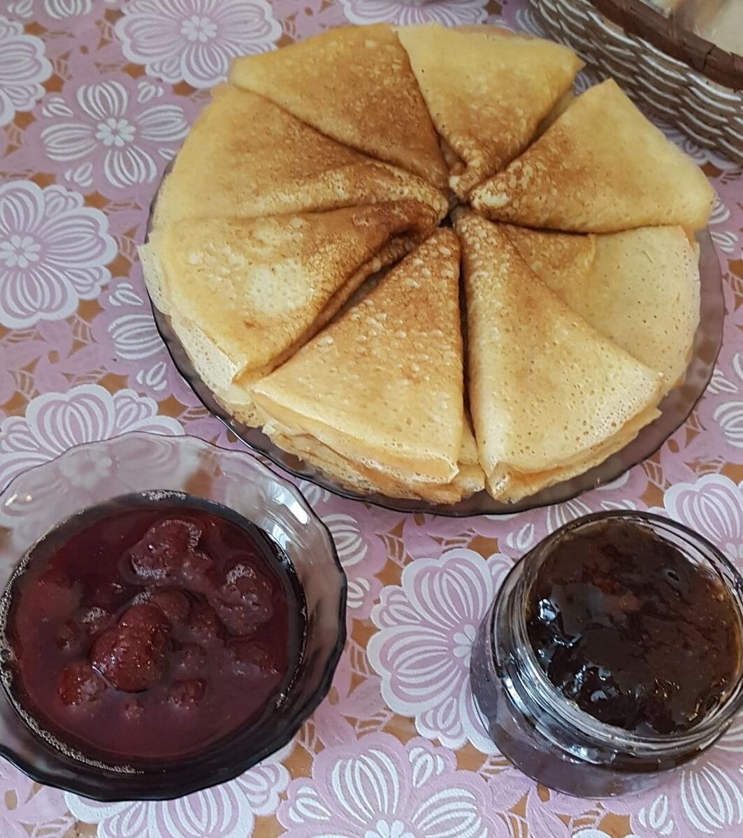 Рецепт. 2 яйца 1ст. кипятка 1ст. молока Сахар по вкусу Щепотка соли 1ст. муки 2ст. л. растительного масла. Способ приготовления. 1) 2 яйца, сахар, соль взбиваем миксером до появления пены. 2) как появилась пена, выливаем тонкой струйкой кипяток продолжая взбивать дальше, масса увеличится в 3 раза 3) теперь вылеваем стакан молока и снова продолжаем взбивать