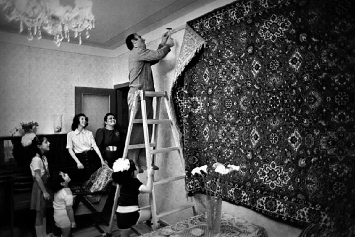 Всегда с теплотой вспоминаю времена СССР. Кто то скажет, что же хорошего, постоянный дефицит, огромные очереди. Может оно и так, но мы, граждане СССР умели "доставать", то что было не доступно. Ковры не стали исключением в эпоху СССР. Нельзя было просто пойти в магазин и купить. Да и цена была более чем приличная. В слух никто не говорил, но благосостояние граждан мерили по наличию ковров и хрусталя. Мой отец ездил аж в Москву за этим дефицитом. Достал как тогда говорили, по блату. А потом к нам весь дом ходил как на экскурсию. В прочем, тогда было в порядке вещей показывать свои обновки соседям. Если в семье был один ковёр, то ему отводилось почётное место на стене в зале. Обычно к этой стене ставили диван или два кресла с журнальным столиком. Но у ковра бала не только статусная роль, но и практическая. Он прекрасно справлялся с ролью защитника обоев от истирания, поглощал звуки. Ковры в те времена были шерстяными, тяжёлыми. Но темнеменее их два раза в год снимали со стены и н