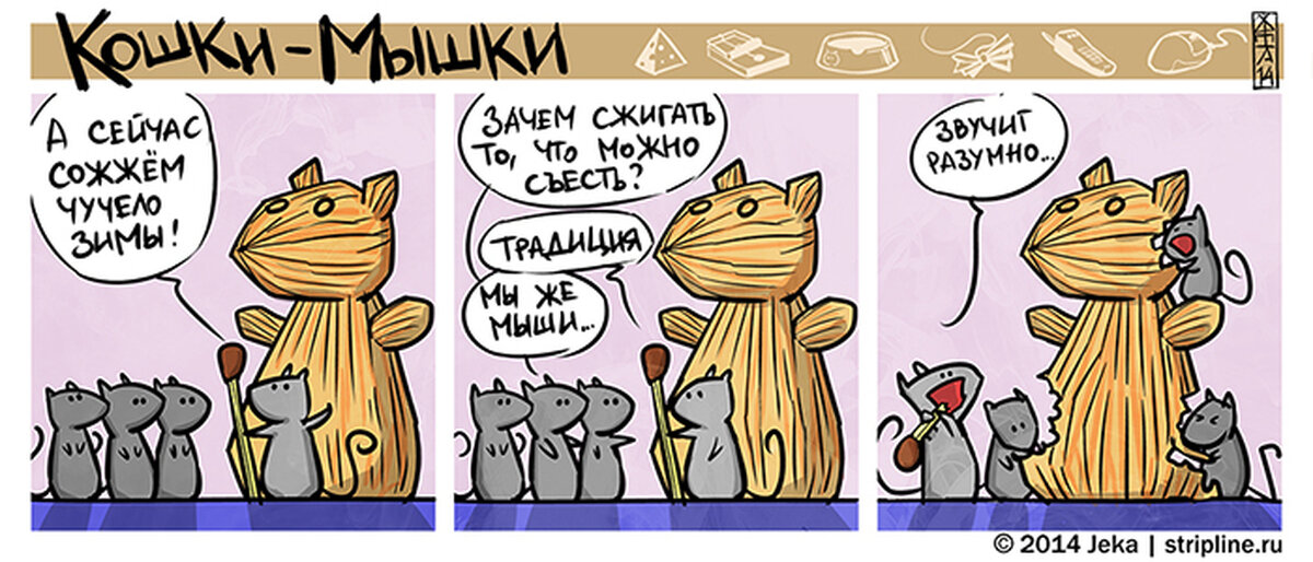 Автор под псевдонимом Кошки-Мышки рисует смешные комиксы о котах и мышках, что в принципе логично. Он нарисовал как отмечают масленицу в мире мышей.