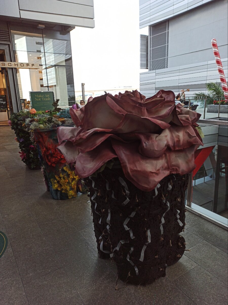 Добро пожаловать, Уважаемые читатели. Когда я путешествовала по США в одном из торговых центров Майами я увидела такие вот мусорные урны. Это своеобразный trash-art. Так называется искусство, где задействован старый хлам, испорченные или использованные вещи, которые другие люди отправляют на свалку. В наше время trash-art -это альтернативное искусство, протест против шаблонов и правил. Художники этого стиля создают непредсказуемые акт-объекты, используя материал, найденный в куче отходов бумажного, синтетического производства. Необычно, правда? Как вам?