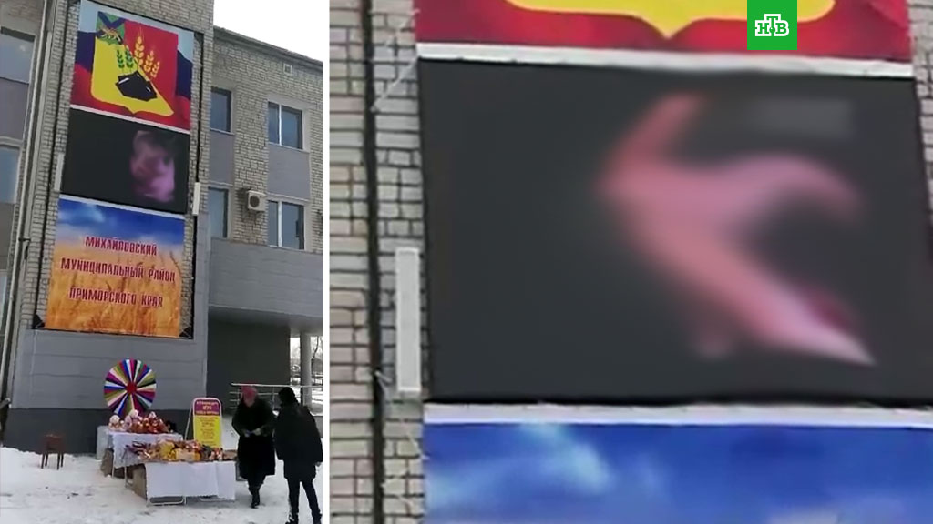 В Приморье во время Масленицы на здании администрации крутили гей-порно.