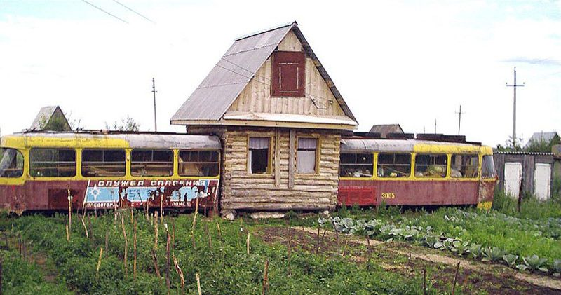На что только не идут измученные вечной суетой городские жители, чтобы сделать свой райский уголок на природе, вдалеке от загазованного мегаполиса, максимально уютным, оригинальным и не таким, как у соседей. Смотрите насколько невероятные и шокирующие дачи существуют на постсоветском пространстве. Приличная дача, как известно, начинается с приличного забора. Только вот от ситуации, когда домик построен, а на забор денег не осталось, не застрахован никто. Если это все же случилось, отчаиваться не нужно, ведь кругом полно подручных, никому ненужных предметов, кои можно легко пустить на сооружение прочной и оригинальной изгороди на зависть соседям. Предлагаю вашему вниманию фотоподборку гениальных дачных решений.