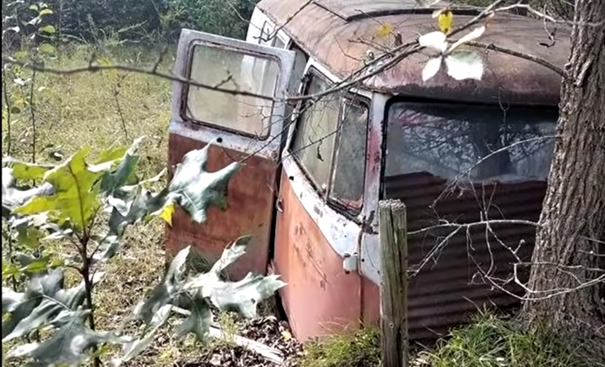 У многих из нас есть свое хобби. У кого это рыбалка, у кого охота, есть люди увлекаются приборным поиском. Вот так было и в этот раз, охотник в Восточной Оклахоме, а точнее к югу от Ститхема, заметил кустах что-то странное, подошел и не поверил своим глазам. Это был автомобиль, закопанный по самую крышу с одной стороны, а с другой чуток меньше, видно было что авто старое, но кто и зачем его закопал? Охотник постоял, посмотрел, сделал фотографии и ушел. Так про эту находку узнал коллекционер старых автомобилей ему удалось выяснить что это volkswagen type 2, но по некоторым источникам type 1 1960, а закопал его еще в 1983 году местный фермер, это было его так сказать убежище от торнадо, так как Оклахома печально известна своими торнадо. И да, этот автомобиль так простоял больше 30 лет. Да владелец на отрез отказался продавать "бус", он сказал: -пока я жив машину никто не тронет, но после его смерти, его брат все-таки согласился на предложение коллекционера. Да, в тех местах люди часто з