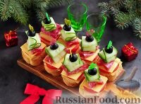 Простая в приготовлении, красивая, вкусная праздничная закуска для семейного новогоднего меню - канапе с колбасой и сыром.