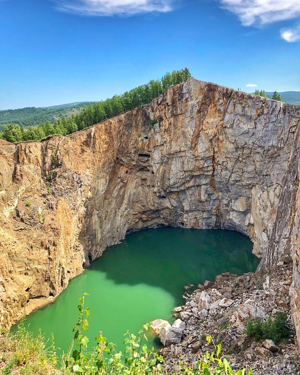 Хакасия – красивейший уголок Сибири. Она сочетает в себе абсолютно разную природу: бескрайние степи, зеленая тайга, чистые озера, отвесные скалы. Каждый найдет для себя отдых по душе. Туимский провал Это место покрыто тайнами. На самом деле это старый медный рудник, который был заброшен. Находится в маленьком поселке Туим в Ширинском районе. Он окружен скалами, а внизу горное озеро изумрудного цвета. Напоминает настоящую сказку! Расстояние от самой верхней точки горы, до озера 120 метров. Глубина озера с точностью неизвестна. На провале есть развлечение – прыгать с тарзанки вниз. Для любителей острых ощущений это место точно подойдет. Саяно-Шушенская ГЭС Одна из самых больших ГЭС в России. Высота сооружения более 240 метров, это очень масштабное и технологичное строение. Особенно красиво выглядит в вечернее время, когда включается подцветка или когда сбрасывают воду, это событие бывает примерно раз в два года. Чтобы увидеть ГЭС нужно ехать от столицы Хакасии города Абакана в сторону С