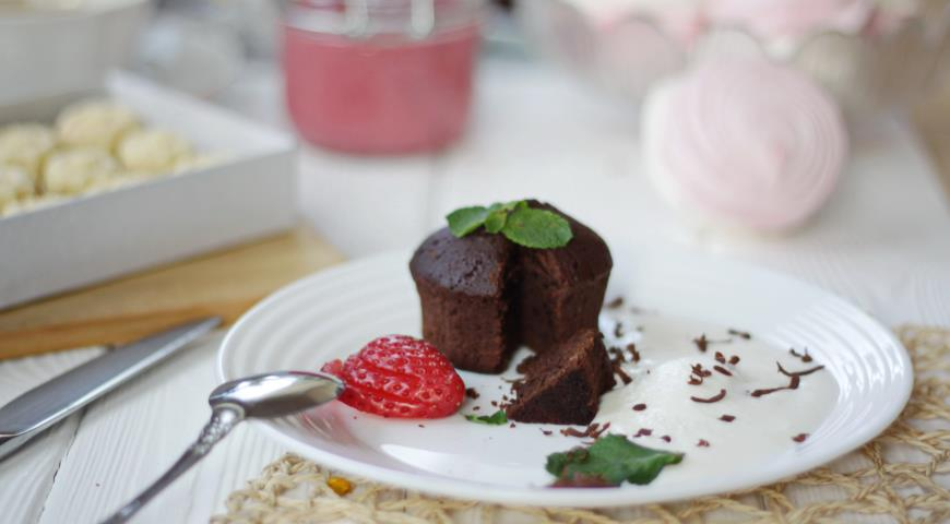 Этот простой и легкий рецепт, не требующий большого количества ингредиентов и не занимающий много времени, несомненно пригодится на заметку каждой хозяйке.Насыщенный вкус выпечки прекрасно дополнят свежие ягоды и пломбир с шоколадной крошкой. Ингредиенты: Приготовление 1. Сливочное масло нарезаем кусочками, разламываем шоколад и кладем все в неглубокую посуду. Растапливаем содержимое на водяной бане, тщательно размешиваем до получения однородной массы. 2. Яйца взбиваем с сахаром до получения густой пены. Выливаем остывшую шоколадную массу в яичную пену и перемешиваем. Шоколадно-масляная смесь не должна быть очень горячей, иначе яйца могут свернуться. 3. Смешиваем муку и соль и просеиваем их в шоколадно-яичную массу. Перемешиваем до однородности, но не очень долго, чтобы тесто не стало очень плотным, так как в этом случае, маффины плохо поднимутся. 4. Формочки для кексов смазываем маслом и разливаем по ним получившееся тесто примерно на уровень чуть больше половины формы. С