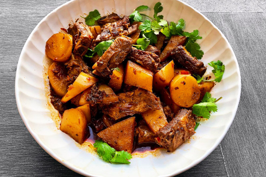 Ингредиенты: 500-600 г – свиных ребрышек 300 г – дайкона 1 шт – черного кардамона (по желанию) 5-6 веточек – кинзы (по желанию) соус 5 см – имбиря 3 ст.л – пасты доубаньцзян 3 ст.л – темного рисового уксуса 2 ст.л – светлого соевого соуса 3 ст.л – коричневого сахара ¾ стакана – воды 1 ст.л – кунжутного масла 1 ст.л – растительного масла Приготовление: Приятного аппетита! Если вам понравилось, поставьте 👍, чтобы я мог понимать предпочтения участников канала и быть более полезным. Делитесь понравившимися рецептами с друзьями, нажав кнопку "Поделиться".