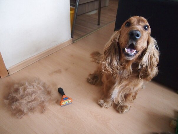 Продолжая разговор об уходе за шерстью, хотелось бы остановиться на приборе, ставшем весьма популярным в последнее время среди собаководов – фурминаторе. Для владельцев длинношерстных собак он стал настоящемспасением, особенно в период линьки. Выглядит он как что-то вроде гребешка с частыми зубьями, прикрепленного к ручке. Благодаря вычесыванию фурминатором, покровные и остевые волосы не прихватываются, а удаляется лишь выпавшая шерсть. Опыт использования пуходерки, к примеру, показывает, что она путает и рвет ость, особенно, если зубья погнуты или инструмент используется человеком, не имеющим навыка. У фурминатора расческа монолитная, поэтому деформации зубьев не бывает. Вычесать столько выпавшей шерсти за один раз можно только им. Почему фурминатору удается то, что не удается другим расческам? Вероятно, потому, что во время вычесывания он распределяет на всю длину шерсти подкожное сало, и волоски становятся блестящими и упругими, нет сухих кончиков и жирных корней, улучшается кров
