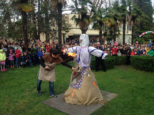 В честь русского праздника, символизирующего конец зимы и начало весны, во всех районах курорта провели народные гуляния. В них приняли участие более 12 тысяч человек. Основные городские мероприятия проходили в парке «Ривьера». Празднование началось с обрядовых танцев и выступления вокально-инструментального ансамбля «Кудрина». Далее шествием по главной аллее парка со скоморохами и песнями все участники народных гуляний прошли до главной площадки праздника. По пути всех желающих угощали блинами и горячим чаем, сообщает пресс-служба мэрии Сочи. В центре «Ривьеры» городские творческие коллективы подготовили тематические концертные номера. Кульминацией празднования стал обряд сжигания соломенного чучела, издавна олицетворявшего на Руси уходящую зиму. В Хостинском районе праздник прошёл на площади у дома культуры в селе Измайловка, в микрорайоне Бытха и на площади у Дома творчества и досуга «Луч». Жители Адлерского района приняли участие в большой концертно-игровой программе, подготовле