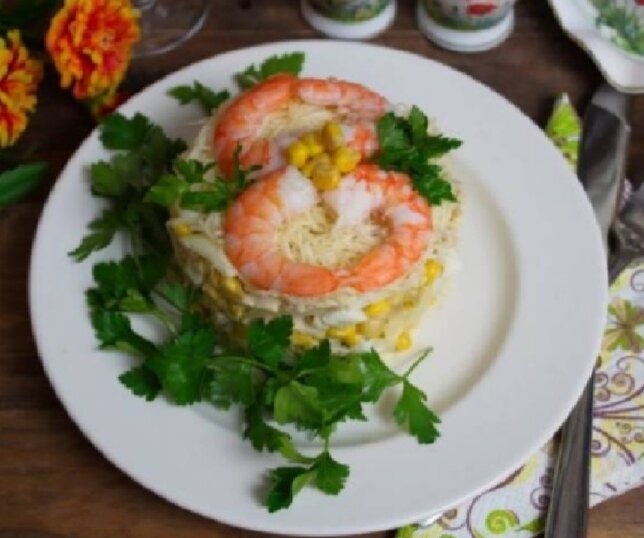 Салат "8 Марта" с кальмарами порадует вас и ваших близких. Он вкусный, все ингредиенты удачно подобраны и отлично сочетаются друг с другом. Как приготовить салат "8 Марта" с кальмарами? Смотрите! Ингредиенты Способ приготовления Для приготовления салата я использую отварной кальмар. Кальмар можно приготовить в домашних условиях. Нарежьте его на небольшие кусочки. Шаг 2 Кукурузу консервированную извлеките из банки, предварительно слив воду. Кукурузу консервированную извлеките из банки, предварительно слив воду. Шаг 3 Репчатый лук нарежьте полукольцами. Замаринуйте в винном уксусе, добавив чайную ложку сахара. Хорошо перемешайте и дать время замариноваться (15 минут). Репчатый лук нарежьте полукольцами. Замаринуйте в винном уксусе, добавив чайную ложку сахара. Хорошо перемешайте и дать время замариноваться (15 минут). Шаг 4 Отварные куриные яйца необходимо очистить и нарезать кубиком. Отварные куриные яйца необходимо очистить и нарезать кубиком. Шаг 5 Салат заправьте майонезом, до