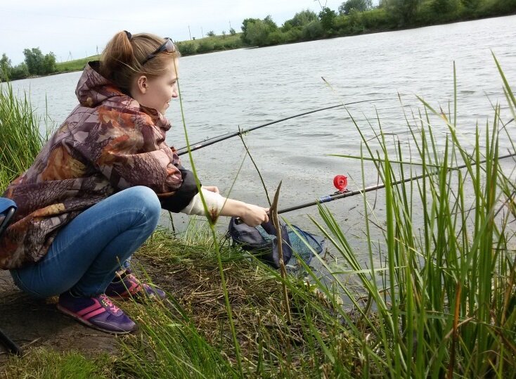 Трясу удочку, а он все равно висит, видно, сильно зацепился. Пришлось с удочкой идти к своему дому, который располагается рядышком с прудом. По дороге ехала легковая машина. Я попросила водителя остановиться. Когда тот вышел, я спросила, не может ли он помочь мне снять с крючка ужа. Ведь не могу же я убить змейку, очень жалко, они же безвредные. Мужчина оказался молодцом: двумя руками взял ужа за хвост и за место недалеко от головы, а мне сказал: «Снимайте свою добычу!» Я отважилась и сняла. Он резко бросил ужа в траву, и тот пополз восвояси, к берегу пруда. Конечно же, я поблагодарила мужчину за помощь.