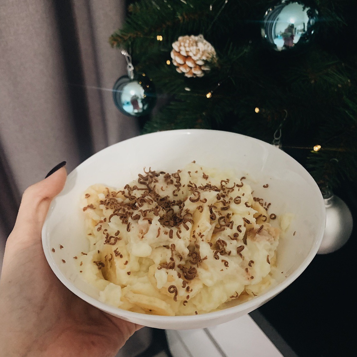 ингредиенты: Молоко- 2 стакана Сахар - 50-70 г (по вашему вкусу). Мука - 1 столовая ложка Кукурузный крахмал - 2 чайные ложки Ванилин - щепотка Бананы - 2 штуки Вафельные трубочки без начинки/песочное печенье - по вкусу Желток - 2 штуки Приготовление: 1. Смешиваем все сухие ингредиенты. 2. Нагреваем молоко до появления пара (не до кипения!). Желтки слегка взбиваем венчиком и вливаем к ним около четверти нагретого молока, продолжаем мешать. 3. Вливаем смесь желтков и молока в сухие ингредиенты, взбиваем венчиком и отправляем в кастрюлю с оставшимся молоком. 4. Помешивая готовим на среднем огне до загустения. Снимаем. Даем остыть (пудинг еще немного загустеет) под крышкой, чтобы не образовалась плёночка. 5. В тарелки, где будет пудинг, выкладываем банан и крошимых вафли/печенье. Заливаем пудингом. 6. Ставим в холодильник минимум на 4 часа. Перед подачей украшаем шоколадной крошкой, вафлями и бананами.
