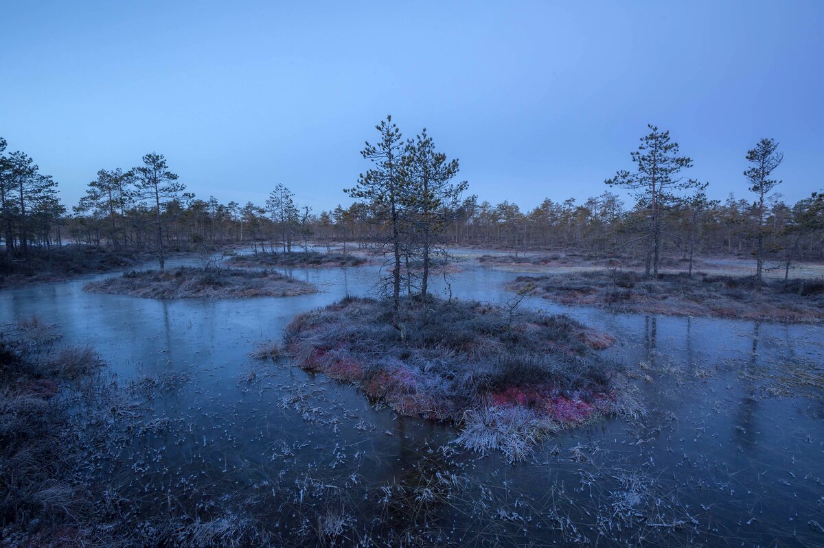 Очередная болотная прогулка, естественно рассветная. Хороший прогноз опять согнал с уютного дивана на болотные топи Ленинградской области. И только стоило выйти из городской зоны комфорта, как спустя полтора часа уже вошёл в болотную зону кайфа. Сумерки, мороз, иней, воздух, запах багульника и пение птиц. Ясная погода, для съёмки небо выдалось скучновато, облака на рассвет опоздали. Но все равно начать рабочий день старой прогулки очень приятно. Болотное островки буквально парят во льдах. А когда включили свет, иней заискрился в лучах солнца, которое раскидало веером тени по болотным озерцам. И несмотря на будний день, единомышленников группа набралась. Все таки чокнутые люди пейзажисты, бегают с камерами по болоту, и радуются красоте простой, северной природы. Приятная прогулка. Недельки через две повторю! Еще про болота: Лунные сумерки на болоте Карельского перешейка. Красивейшее состояние природы Несидитедома, там нет ничего интересного, подписывыйтесь на этот кан