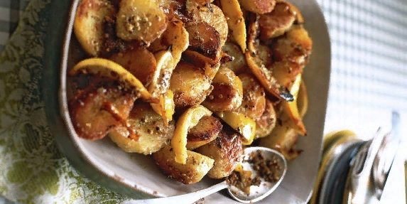 Запечённый картофель с лимоном Ингредиенты: Приготовление Положите очищенный и нарезанный пополам картофель в кипящую солёную воду и варите 10–12 минут. Слейте воду и на минутку оставьте картофель в дуршлаге. Налейте оливковое масло в форму для запекания и поставьте её в разогретую до 200 °С духовку на пару минут. В разогретое масло выложите картофель и дольки лимона и посыпьте сверху кориандром, орегано, а также солью и перцем. Тщательно перемешайте, чтобы картофель был полностью покрыт маслом. Запекайте в духовке 45–60 минут, периодически переворачивая картофель, чтобы он равномерно покрылся золотистой корочкой. Приятного аппетита!!!
