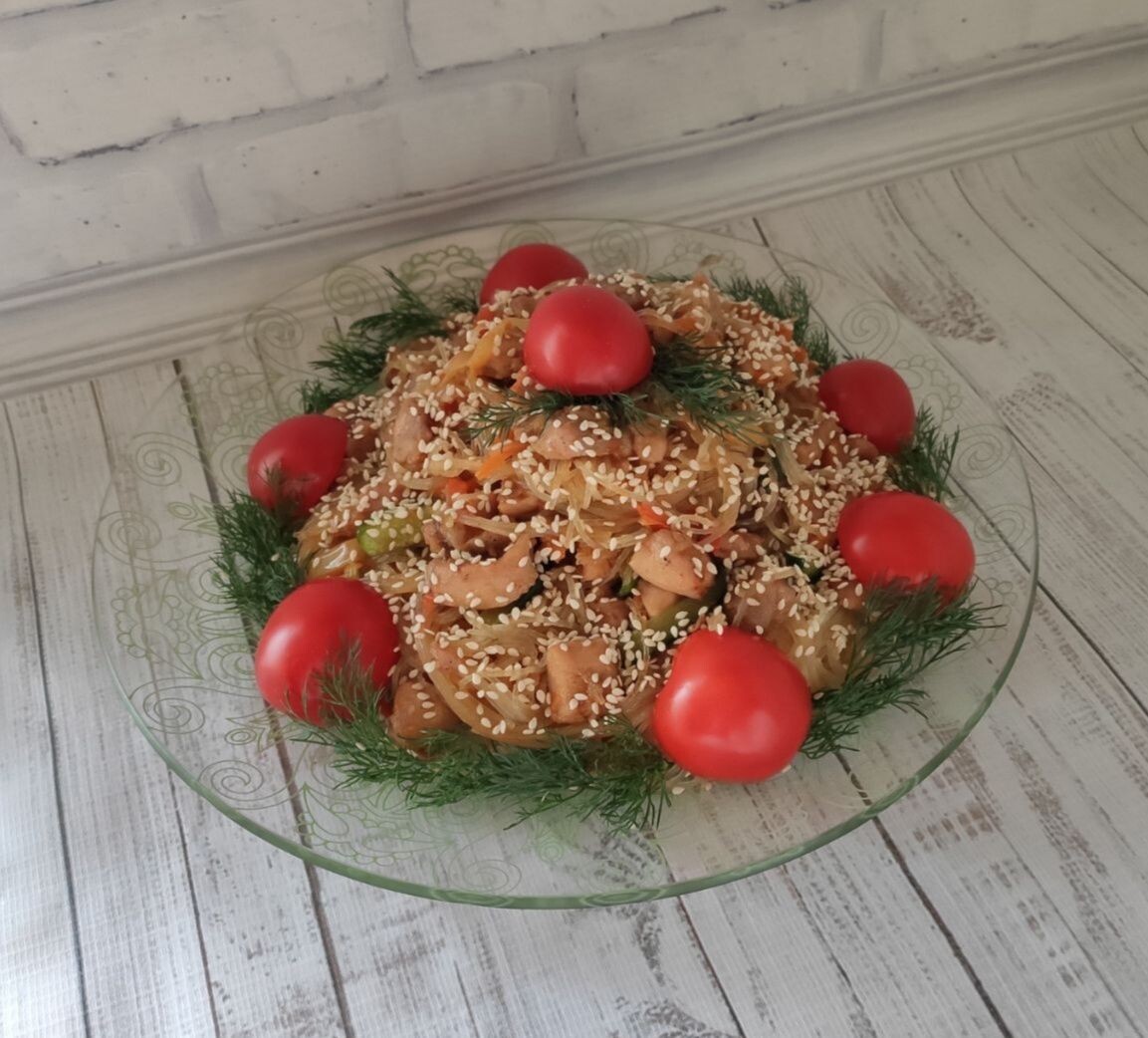 Друзья, всем привет. Давно хотела приготовить фунчозу, и вот она "Фунчоза с курицей и овощами. Получилось очень красиво и вкусно. Готовится быстро, съедается еще быстрее. Попробуйте и семья точно оценит) Как вам? Красиво получилось? Лайк нам за старания, сохраняйте рецепт, делитесь с друзьями в соц сетях.