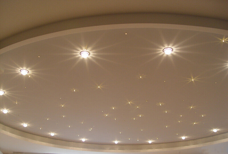 Множественные источники света разного размера создадут впечатление звездного неба, такое освещение очень нравится детям, поэтому нередко применяется в детских спальнях.