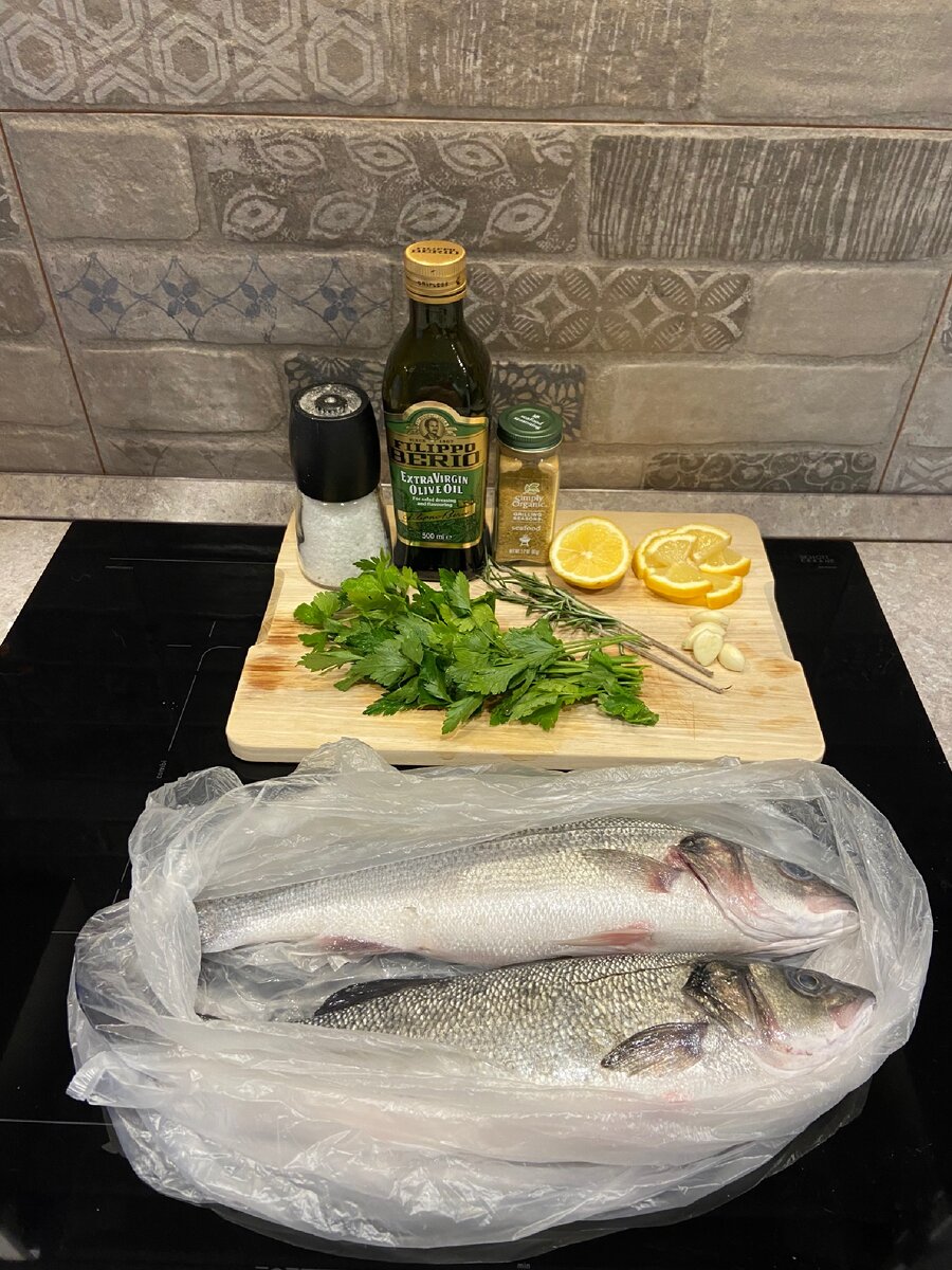 Я обожаю готовить рыбу в духовке, потому что это быстро и просто! Берём: 🔸любую рыбку (у меня сибас, но можно взять дорадо или любую другую тушку) 🔸чеснок 🔸лимон 🔸розмарин, петрушку, укроп 🔸соль, перец 🔸специи для морепродуктов (у меня с iherb) ⠀ Рыбу чистим, делаем небольшие надрезы с обеих сторон. ⠀ Натираем смесью соли, перца, специй и измельчённого чеснока+ измельчённый укроп (которого вчера дома не оказалось). В надрезы вставляем кусочки лимона, в брюхо кладём розмарин и зелень. ⠀ Запекаем в духовке 40-45 мин при 180 градусах! ⠀ Приятного аппетита!