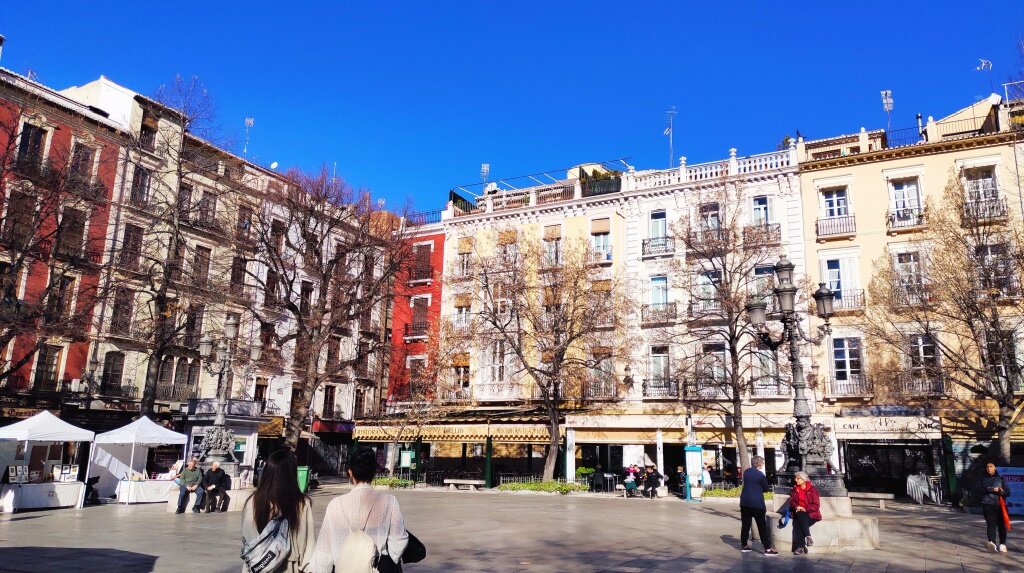 Широким жестом я скопировала все гранадские фотки (кроме Альгамбры) в одну папку и решила написать один пост, всего один. Но, увы, не получится, ибо даже если оставить по одной фотографии чего-то красивого, то получится очень много. Так что сегодня пока про самый центр, то есть про то красивое, что можно увидеть на кусочке буквально 200 на 200 м. Главная площадь Гранады - Биб-Рамбла (название от проездных ворот города Puerta Bab al-Ramla). Здесь проходили турниры мавританских рыцарей, а позже народные праздники и коррида, и здесь же по распоряжению инквизиции сожгли почти всю библиотеку Гранадского мавританского Университета. В центре находится фонтан Гигантов с мраморной статуей Нептуна наверху. Фонтан создан в XVII веке, а на это место был помещен в 1940 году. Гиганты какие-то, скажем прямо, не гигантские, и испытываешь не преклонение, а жалость. Не пойму почему, но в каждом андалузском городе есть какой-нибудь объект, связанный с гигантами: арка, дом, мост, ну и в Гранаде это фонта