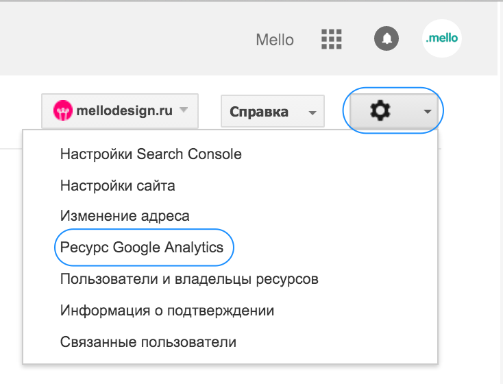 1) Связываем Search Console с Google Analytics: