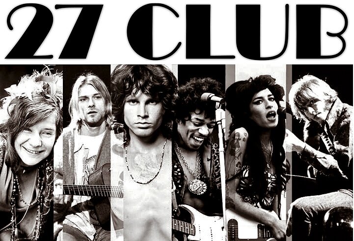 Клуб 27 (англ. 27 Club) — объединённое название влиятельных музыкантов, умерших в возрасте 27 лет, иногда при странно сложившихся обстоятельствах . Музыканты, включённые в Клуб 27Править Первым в списке из семи музыкантов оказался Роберт Джонсон (по утверждению критиков он считается первым членом Клуба 27). В список также вошли Джими Хендрикс, Джим Моррисон и Дженис Джоплин. Самой главной деталью их смерти, которая и послужила толчком к созданию Клуба, является то, что они умерли за промежуток времени продолжительностью в 10 месяцев. Позже в список был включён Брайан Джонс; при этом Моррисон и Джонс умерли в один день, но с разницей в два года. Затем в Клуб был включён Курт Кобейн, застрелившийся в 1994 году, на пике популярности. После смерти в 2011 году британской певицы Эми Уайнхаус её причислили к Клубу многие издания.