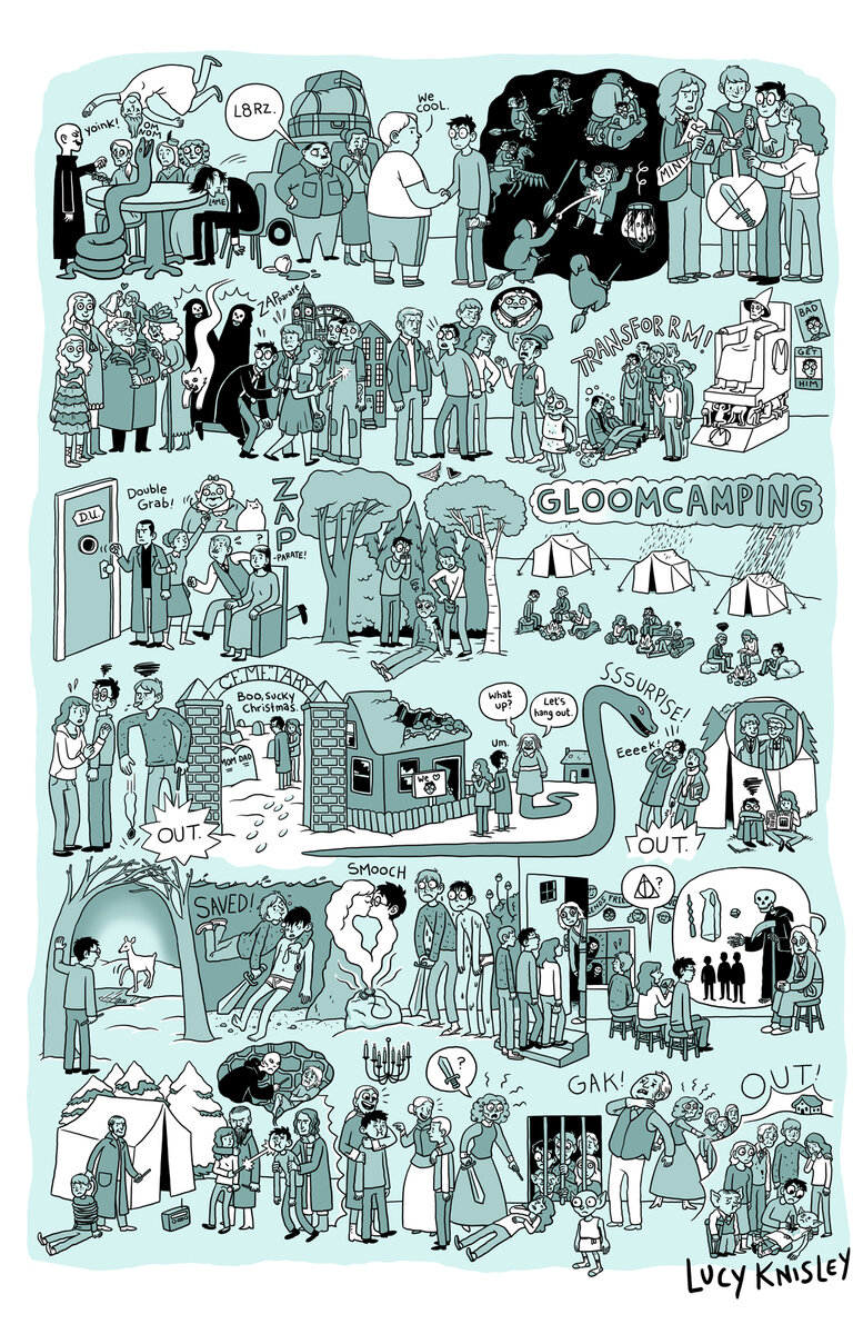 Всем привет! Продолжение работ американской художницы-иллюстратора Люси Нисли (Lucy Knisley), подарившей миру неофициальную комикс-версию фильмов о Гарри Поттере. Каждая часть истории о Мальчике-Который-Выжил весьма исчерпывающе передаёт ее основное содержание. Надеюсь, фанатам книг и фильмов будет приятно :) Гарри Поттер и Дары Смерти. Часть 1: Гарри Поттер и Дары Смерти. Часть 2: Предыдущие части: Комикс-версия фильмов о Гарри Поттере. Часть 1, 2 Комикс-версия фильмов о Гарри Поттере. Часть 3, 4 Комикс-версия фильмов о Гарри Поттере. Часть 5, 6 Спасибо за внимание!)