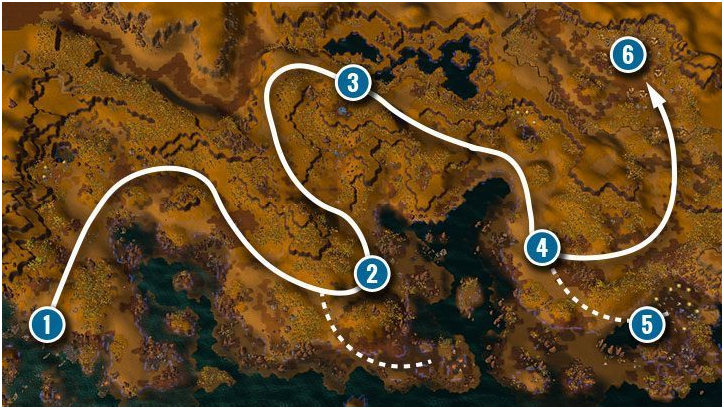 Вторая миссия кампании Орков - миссия сопровождения. Вы должны защитить караван тауренов, который состоит из воинов и кодоев (1). Вы начинаете миссию внизу карты. Караван должен посетить оазис, чтобы восстановить силы для дальнейшего путешествия. Ваша задача - обеспечить безопасность Таурена и очистить дорогу перед ними.