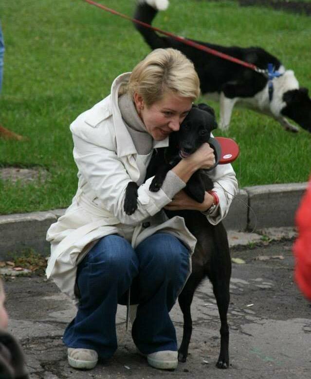 Татьяна Лазaрева, российская телеведущая и актриса, вместе с Ириской-собачкой, взятой из приюта. “Наконец-то во всем мире стало модным помогать, беречь, делать добро. Пожалуй, нет ни одного богатого и знаменитого на Западе, который бы не помогал приютам для животных или не брал бы собак и кошек к себе домой.” Глянцевые издания пестрят фотографиями, на которых счастливые звезды в обнимку с не менее счастливыми собаками и кошками: Джодж Клуни и Дженнифер Энистон, Роберт Дауни-младший и Роберт Паттинсон. В западных странах животное из приюта отдают с удовольствием. Но перед этим устраивают с кандидатом на нового хозяина серьезное собеседование. Любой человек должен сначала доказать, что он в состоянии позаботиться о питомце. Подвергались собеседованию даже члены королевской семьи. Например, супруге принца Чарльза – герцогине Камилле пришлось отвечать на вопрос, позволяют ли ее жилищные условия содержать животное. Лауреат премии Оскар, Сандра Буллок, является также обладателем большого с