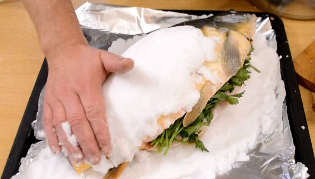 Друзья, привет ! Дело было так. Насмотрелся я всяких там Рамзи да Оливеров , и возомнил себя Шеф-поваром , да не только с большой буквы , а ваще пипец каким крутым (у меня такое часто бывает))))))) , ну и решил замахнуться на достаточно известный рецепт рыбы запечённой в соли . Вот только нормальные то люди рыбку берут грамм по 300 -350 , но я об этом подумал только тогда , когда карп под 3 кило лежал на столе , а камера была уже включена )))) . Обязательно посмотрите видео эксперимента , оно как обычно внизу ролика.