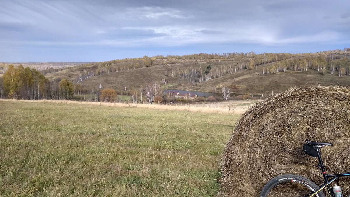 И так, слетая вниз с одного холма и по инерции вкатываясь на следующий, преодолев один крутячок, где пришлось спешиться, так как вел, буквально, вставал на дыбы, доехали до посёлка Тайжина. Не спускаясь в сам посёлок, наблюдали его с холма.