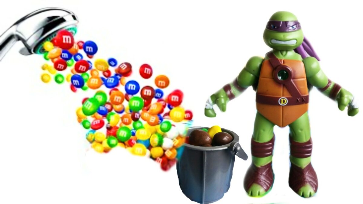 Черепашка ниндзя Донателло хочет конфеты или Волшебный душ из m&m's
