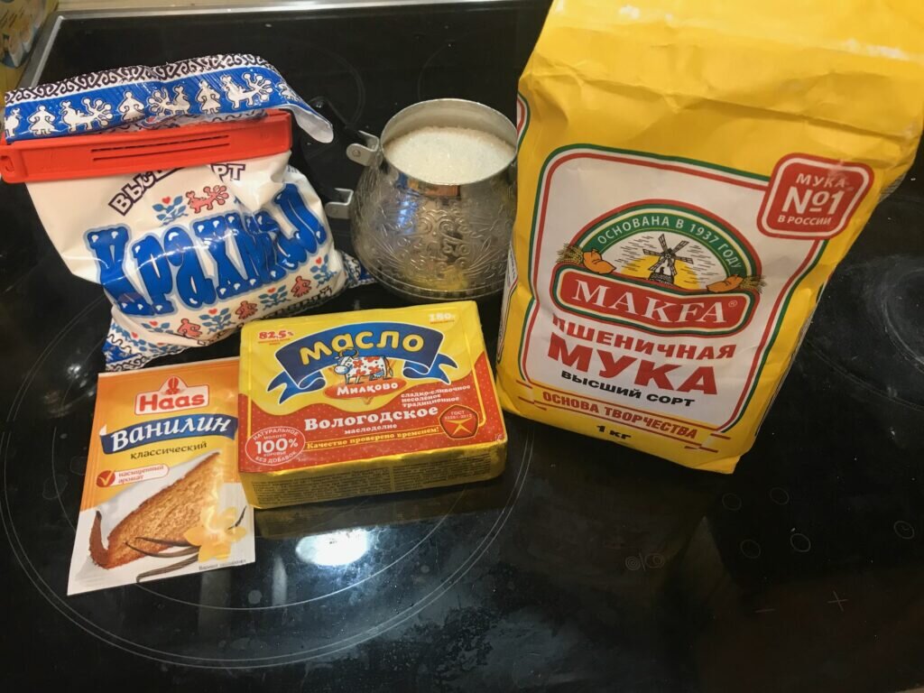 Ингредиенты: Способ приготовления: Масло должно быть комнатной температуры. Взбиваем его миксером с сахаром на высокой скорости. Добавляем ванилин, крахмал и 0,5 стакана муки. Все снова взбиваем миксером. Остальную муку добавляем постепенно, замешивая ложкой. Должна получиться консистенция густой-густой каши. Тесто получается очень податливое, поэтому можно использовать любые формочки для печенья или самим руками лепить, что хочется. Мы с сыном изучали буквы например. Однако выкладывая печенье на противень следует помнить, что оно увеличится в размерах, поэтому надо делать расстояния побольше, чем получились у меня. Убираем в предварительно разогретую до 180 градусов духовку на 15-20 минут. Надо чтобы оно слегка подрумянилось. Пока печенье горячее оно мягкое и легко режется, поэтому если что то получилось не очень аккуратно, есть возможность подравнять острым ножом. Однако затем когда печенье остынет, оно становится уже твердым и рассыпчатым. Сверху можно украсить сахарной пудрой. Бол