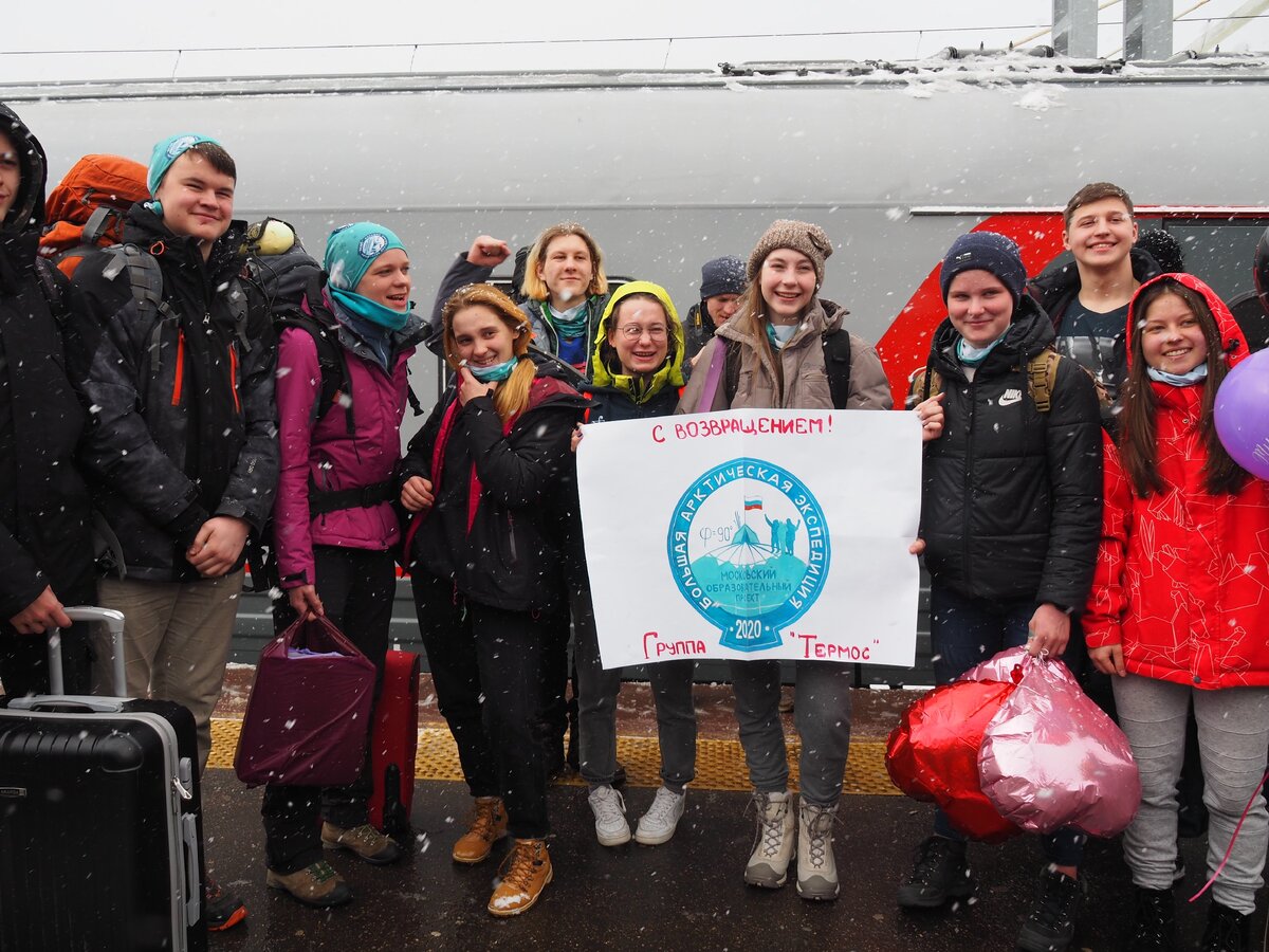 Сегодня наши юные полярники вернулись из Карелии. Люди на Ленинградском вокзале спрашивали "Кого это встречают с оркестром? Кто приехал?". А родители и друзья ребят с гордостью отвечали "Это наши отважные путешественники вернулись из продолжительного зимнего похода!". И ведь они правда отважные, прошли 104 километра по заснеженным карельским лесам. За это время стали единой командой, настоящими друзьями, которые не потеряются в жизни. Теперь предстоит сложный отбор. Из сорока человек надо выбрать только семь. Только семь из них пойдут на Северный полюс под руководством известного полярного путешественника Матвея Шпаро. Они все достойны, все молодцы, и выбор будет очень сложным. Но в любом случае, ребята прошли очень сложный маршрут в Карелии, который, по словам предыдущих участников, намного труднее, чем путь к Северному полюсу. Через несколько дней мы узнаем имена счастливчиков, которые отправятся на Вершину Мира. А сейчас нам предстоят учебно-тренировочные сборы научного отряда "Барн